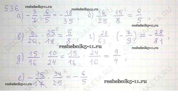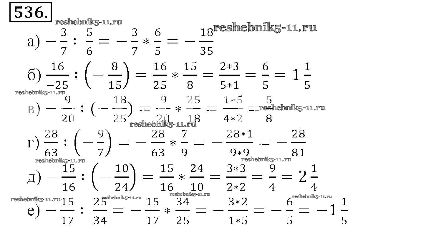 Готовая домашняя работа с ответами по Математике за 6 класс Никольский, Потапов, Решетников, Шевкин Учебник МГУ - школе Просвещение 2014 ФГОС - Номера 536