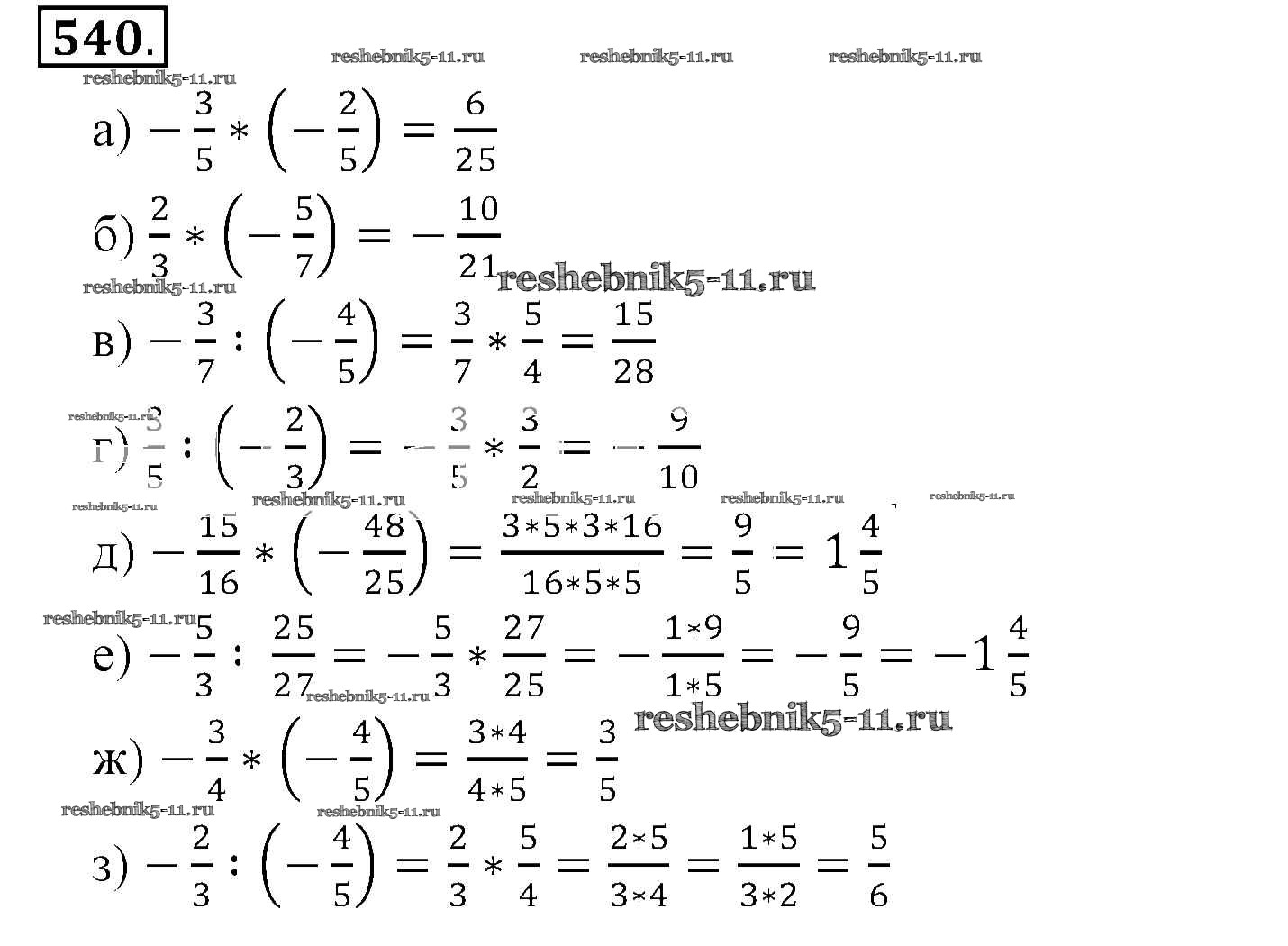 Готовая домашняя работа с ответами по Математике за 6 класс Никольский, Потапов, Решетников, Шевкин Учебник МГУ - школе Просвещение 2014 ФГОС - Номера 540