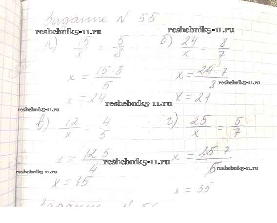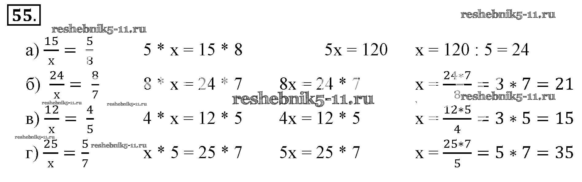Готовая домашняя работа с ответами по Математике за 6 класс Никольский, Потапов, Решетников, Шевкин Учебник МГУ - школе Просвещение 2014 ФГОС - Номера 55