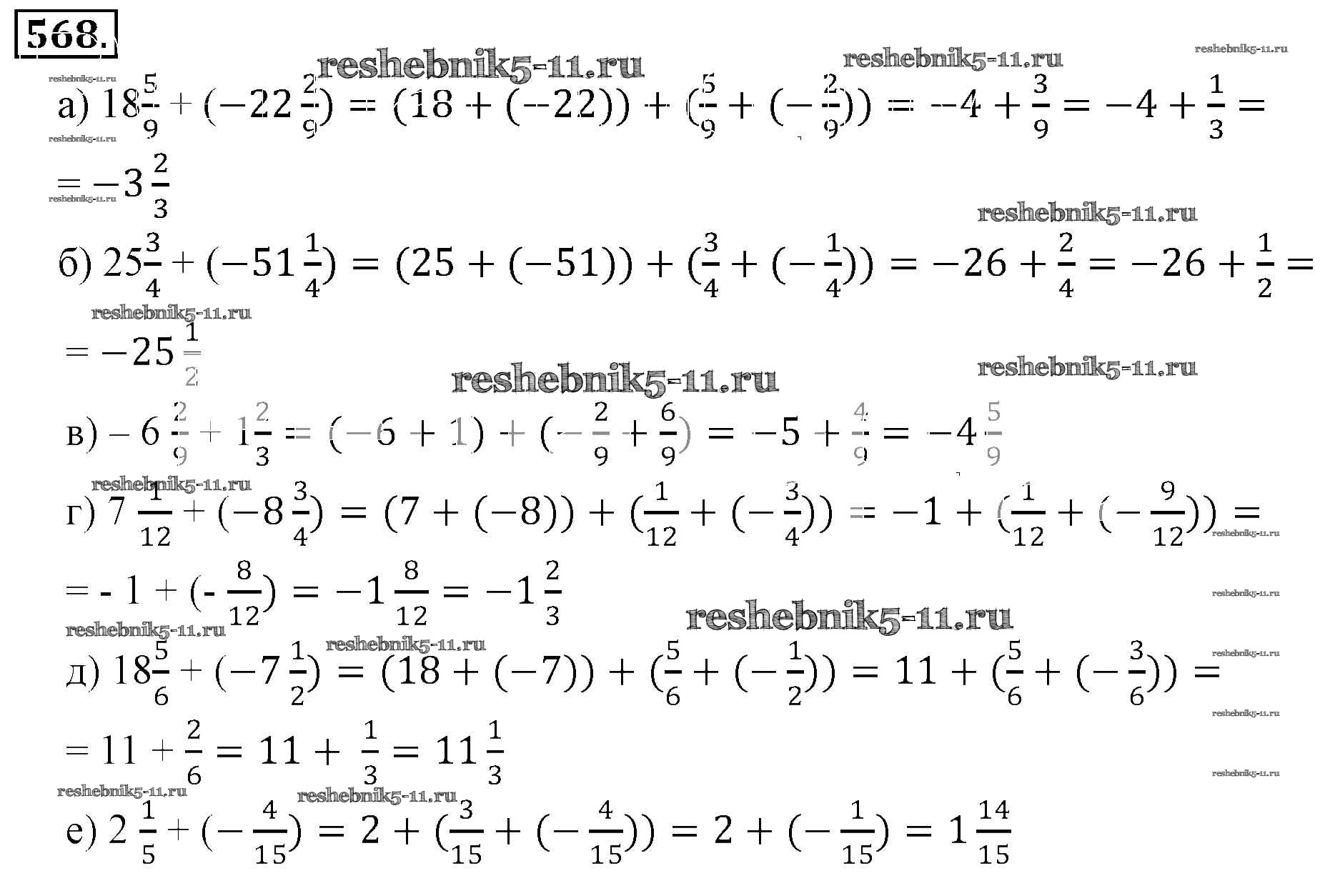 Готовая домашняя работа с ответами по Математике за 6 класс Никольский, Потапов, Решетников, Шевкин Учебник МГУ - школе Просвещение 2014 ФГОС - Номера 568