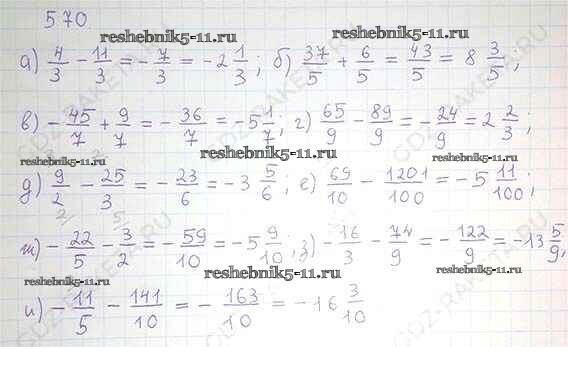 Готовая домашняя работа с ответами по Математике за 6 класс Никольский, Потапов, Решетников, Шевкин Учебник МГУ - школе Просвещение 2014 ФГОС - Номера 570