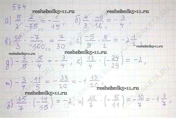 Готовая домашняя работа с ответами по Математике за 6 класс Никольский, Потапов, Решетников, Шевкин Учебник МГУ - школе Просвещение 2014 ФГОС - Номера 574