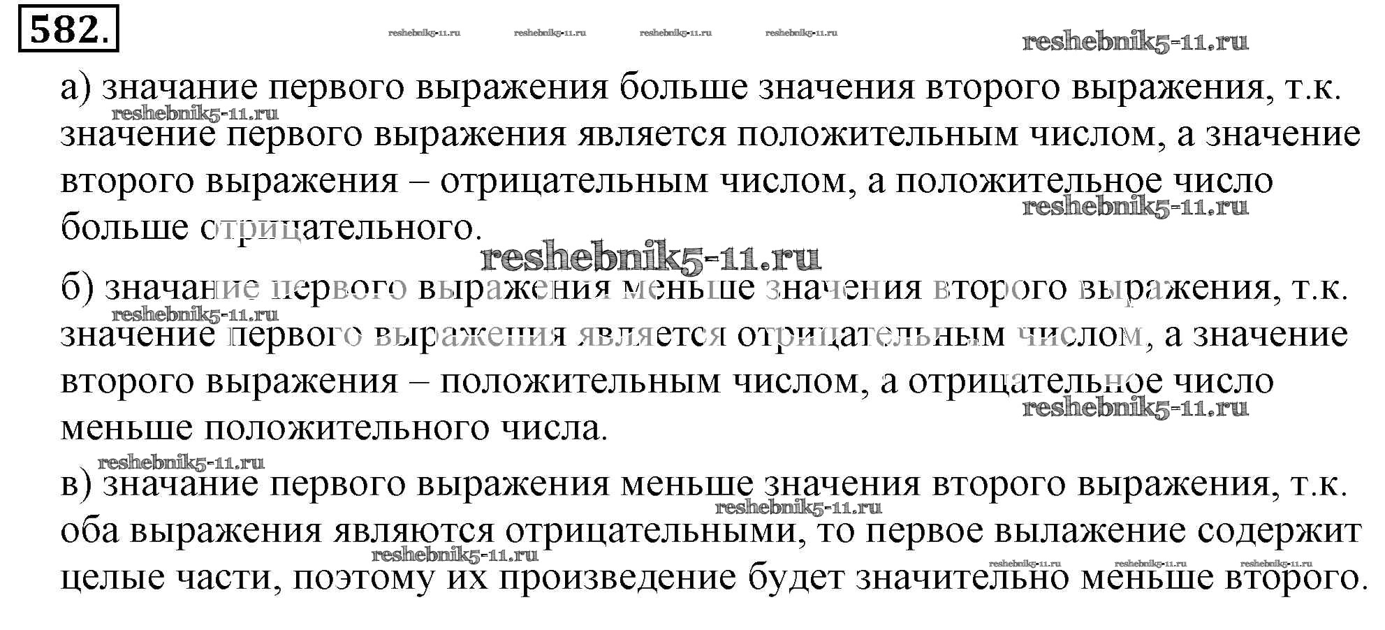 Готовая домашняя работа с ответами по Математике за 6 класс Никольский, Потапов, Решетников, Шевкин Учебник МГУ - школе Просвещение 2014 ФГОС - Номера 582