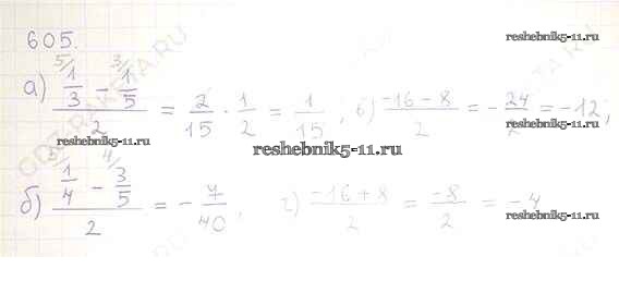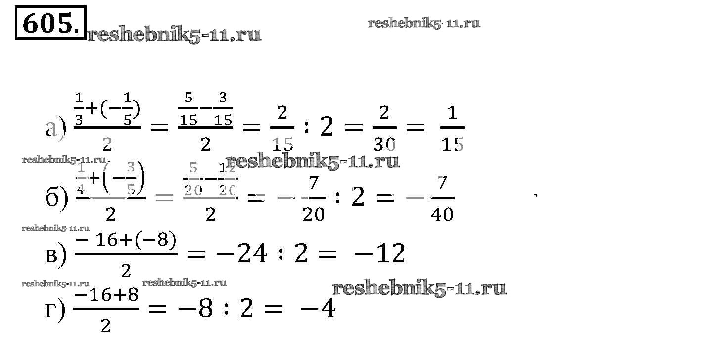 Готовая домашняя работа с ответами по Математике за 6 класс Никольский, Потапов, Решетников, Шевкин Учебник МГУ - школе Просвещение 2014 ФГОС - Номера 605