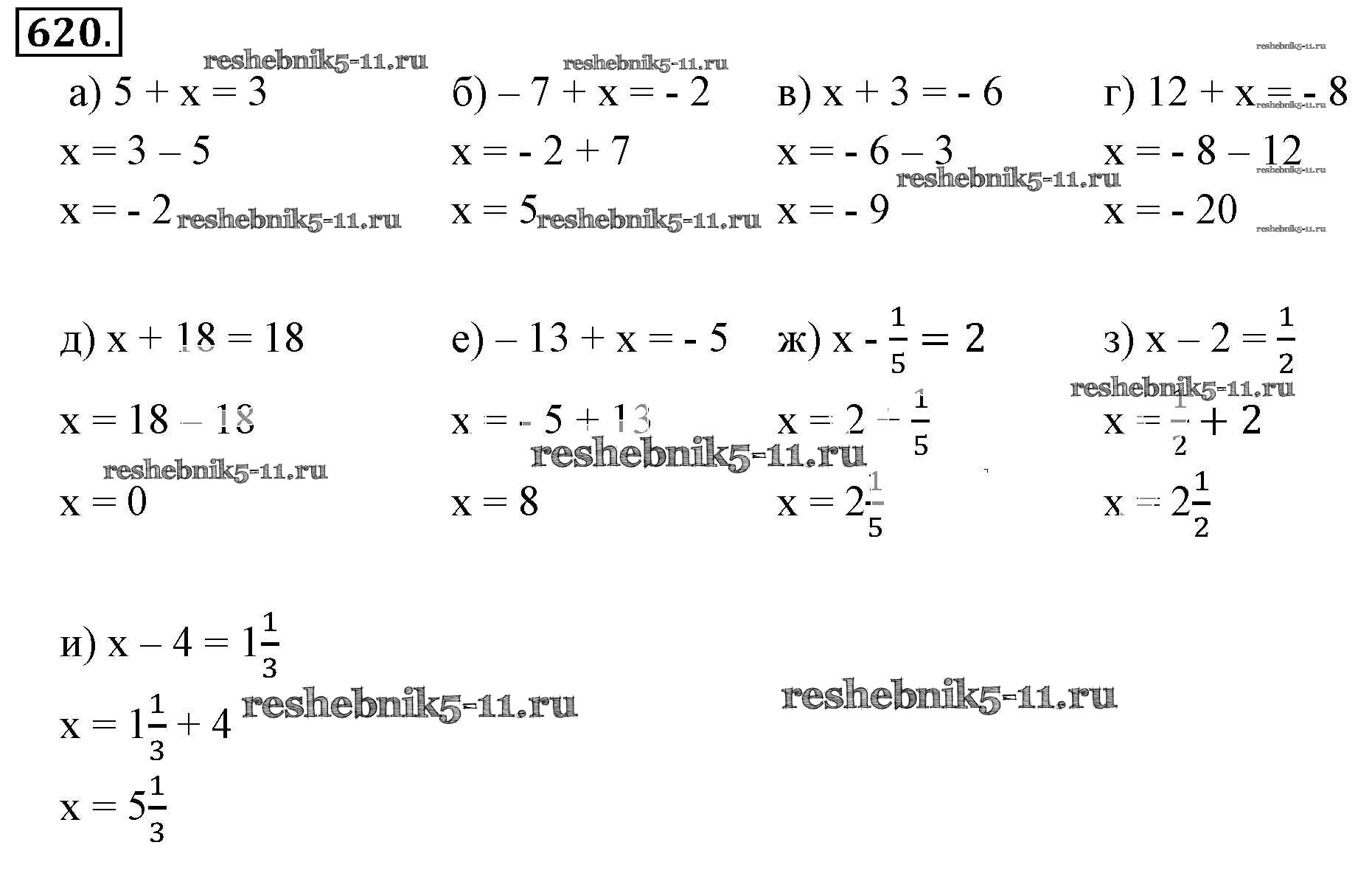 Готовая домашняя работа с ответами по Математике за 6 класс Никольский, Потапов, Решетников, Шевкин Учебник МГУ - школе Просвещение 2014 ФГОС - Номера 620
