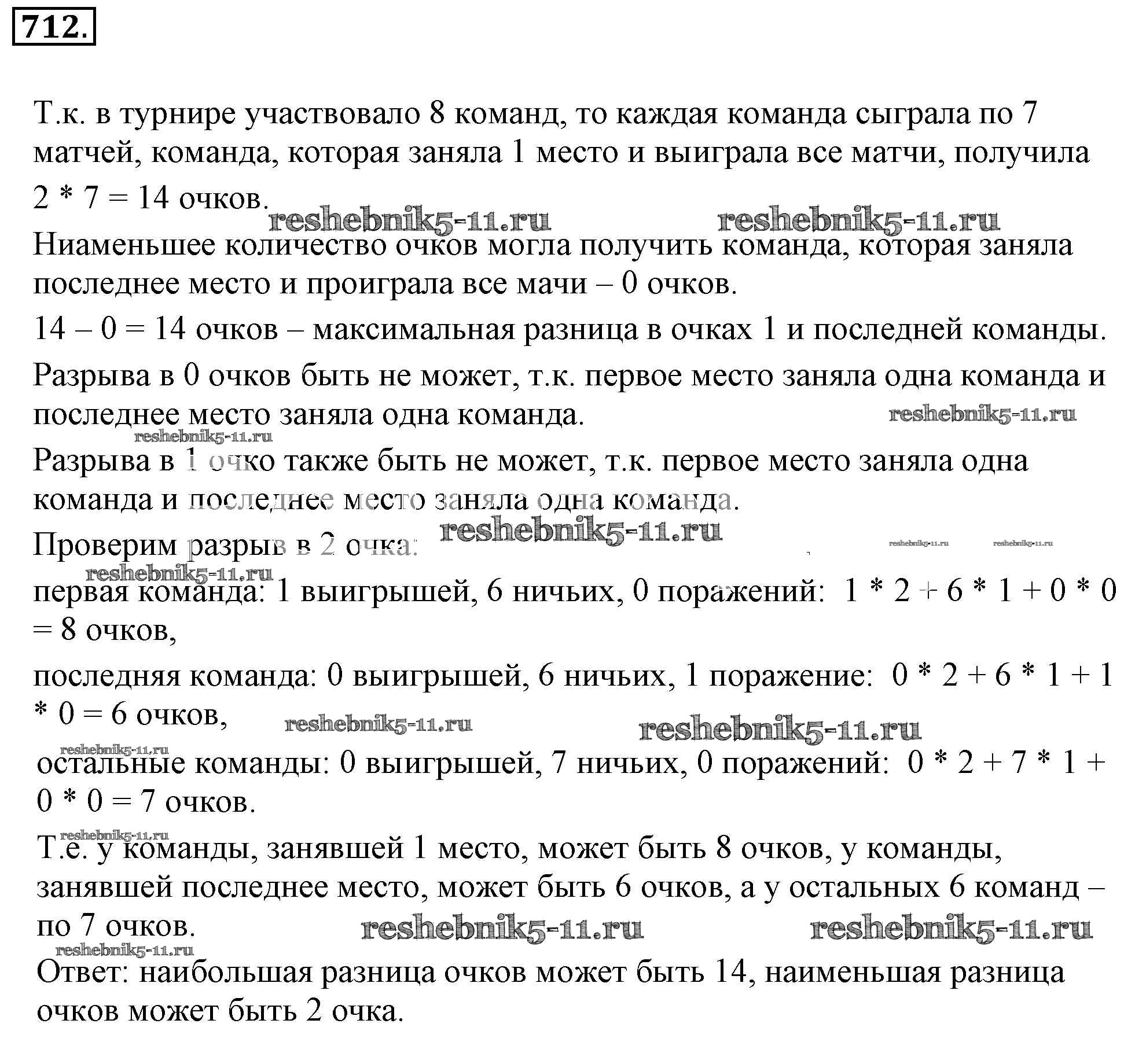 Готовая домашняя работа с ответами по Математике за 6 класс Никольский, Потапов, Решетников, Шевкин Учебник МГУ - школе Просвещение 2014 ФГОС - Номера 712