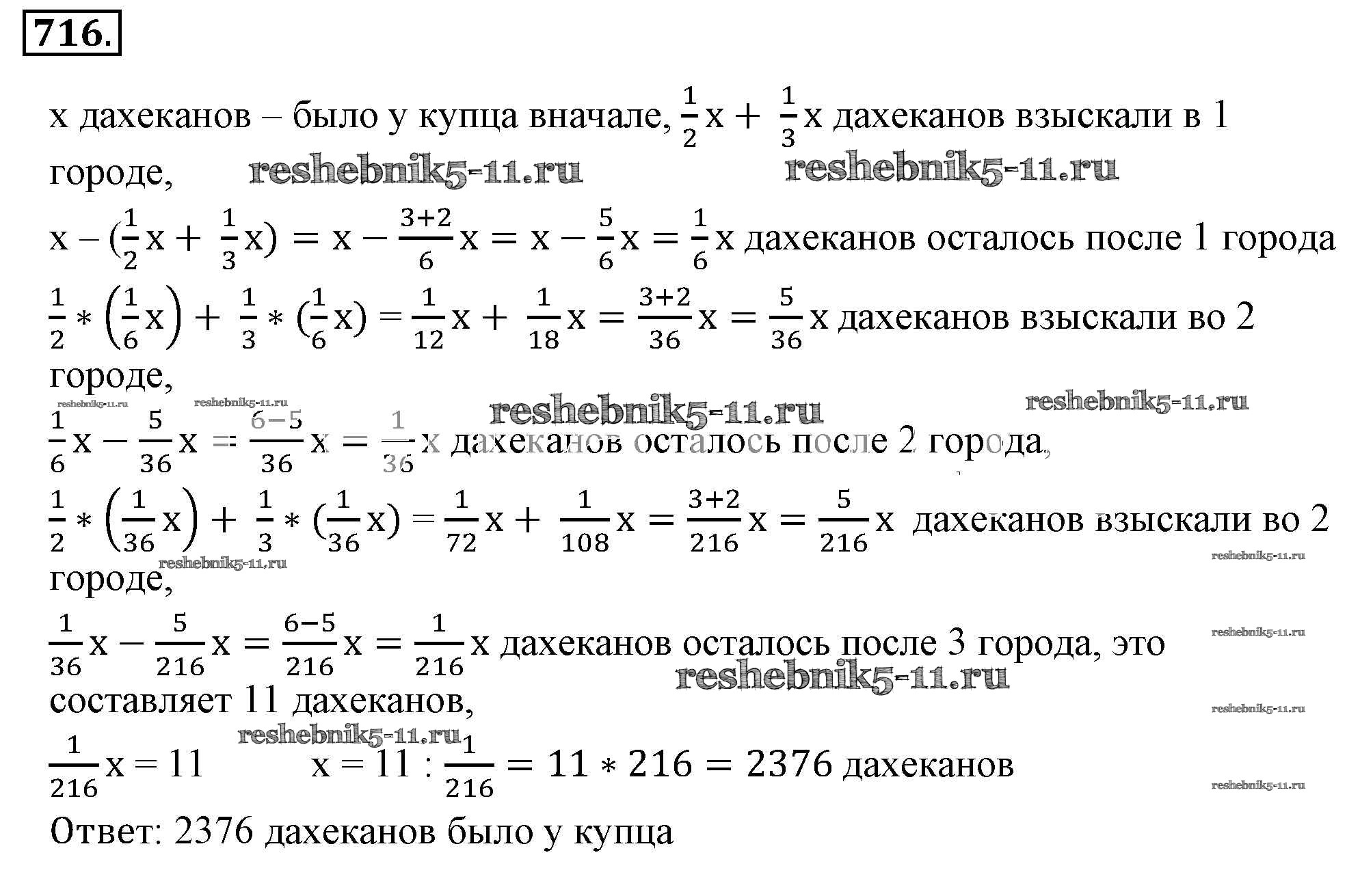 Готовая домашняя работа с ответами по Математике за 6 класс Никольский, Потапов, Решетников, Шевкин Учебник МГУ - школе Просвещение 2014 ФГОС - Номера 716