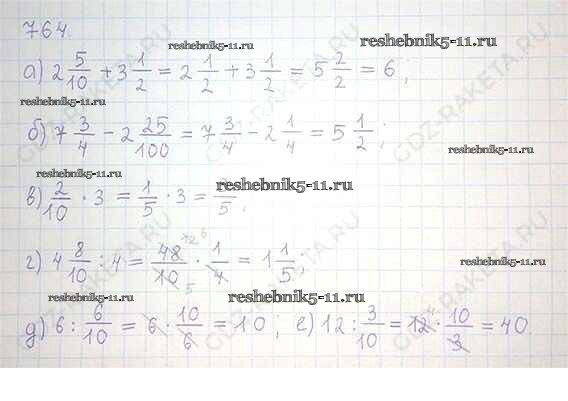 Готовая домашняя работа с ответами по Математике за 6 класс Никольский, Потапов, Решетников, Шевкин Учебник МГУ - школе Просвещение 2014 ФГОС - Номера 764