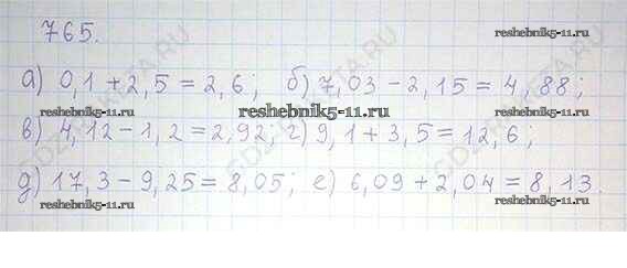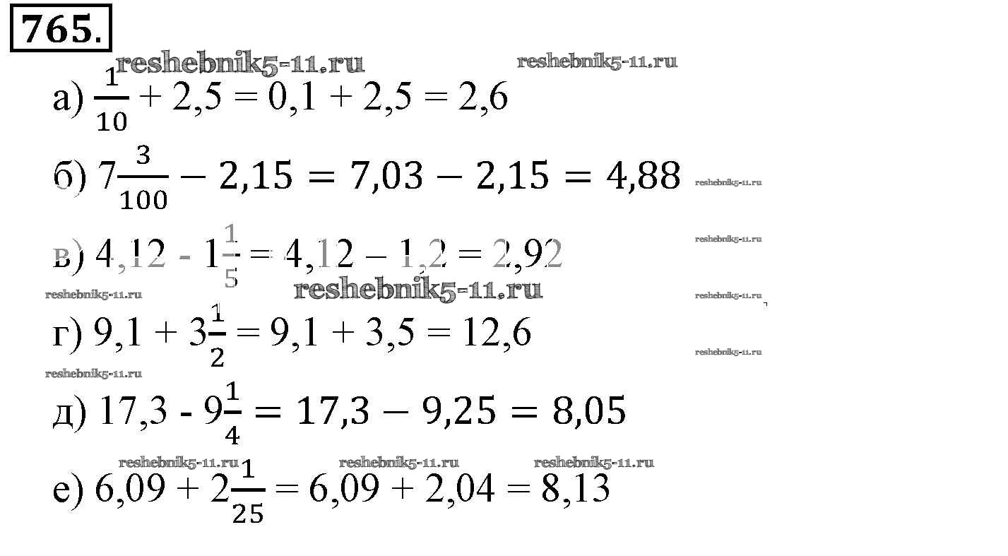 Готовая домашняя работа с ответами по Математике за 6 класс Никольский, Потапов, Решетников, Шевкин Учебник МГУ - школе Просвещение 2014 ФГОС - Номера 765