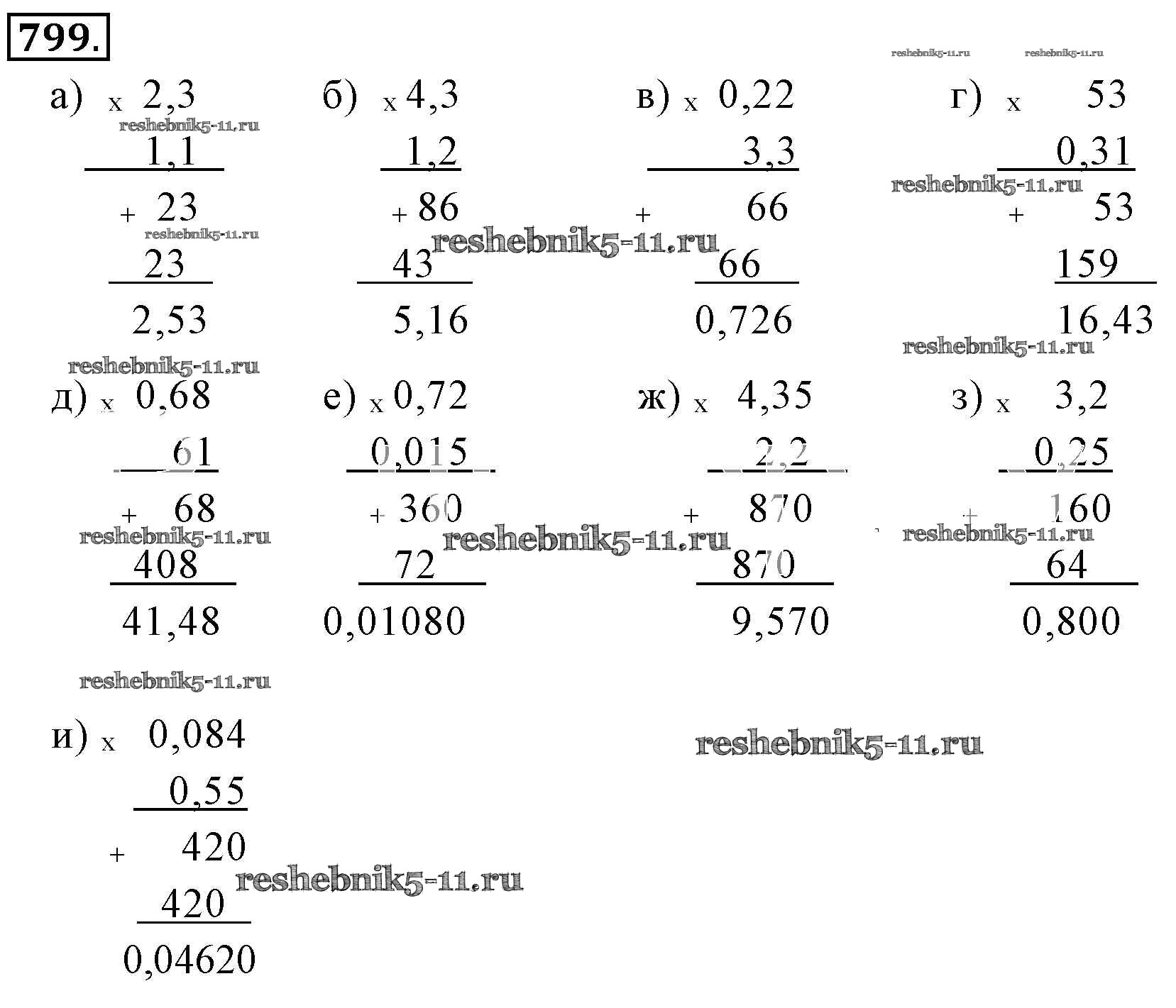 Готовая домашняя работа с ответами по Математике за 6 класс Никольский, Потапов, Решетников, Шевкин Учебник МГУ - школе Просвещение 2014 ФГОС - Номера 799