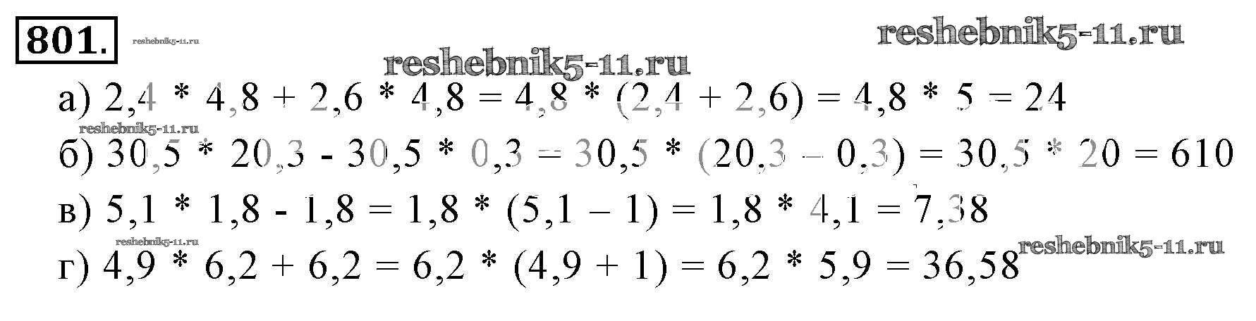 Готовая домашняя работа с ответами по Математике за 6 класс Никольский, Потапов, Решетников, Шевкин Учебник МГУ - школе Просвещение 2014 ФГОС - Номера 801