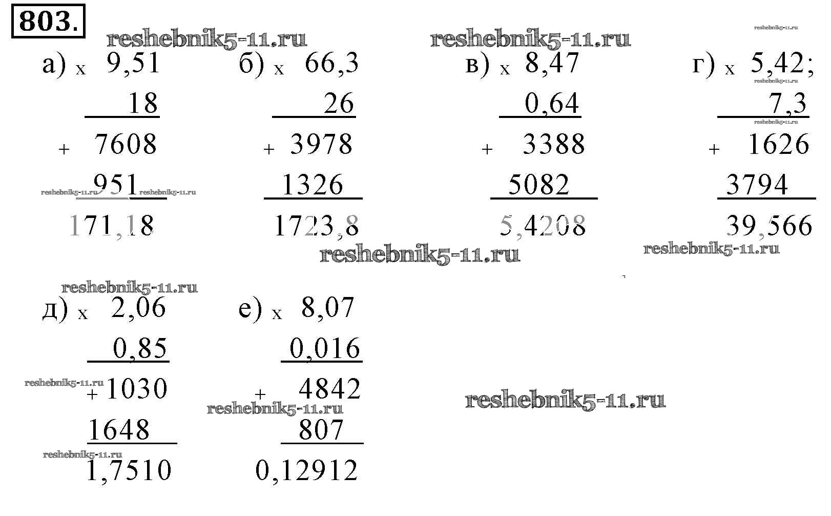 Готовая домашняя работа с ответами по Математике за 6 класс Никольский, Потапов, Решетников, Шевкин Учебник МГУ - школе Просвещение 2014 ФГОС - Номера 803