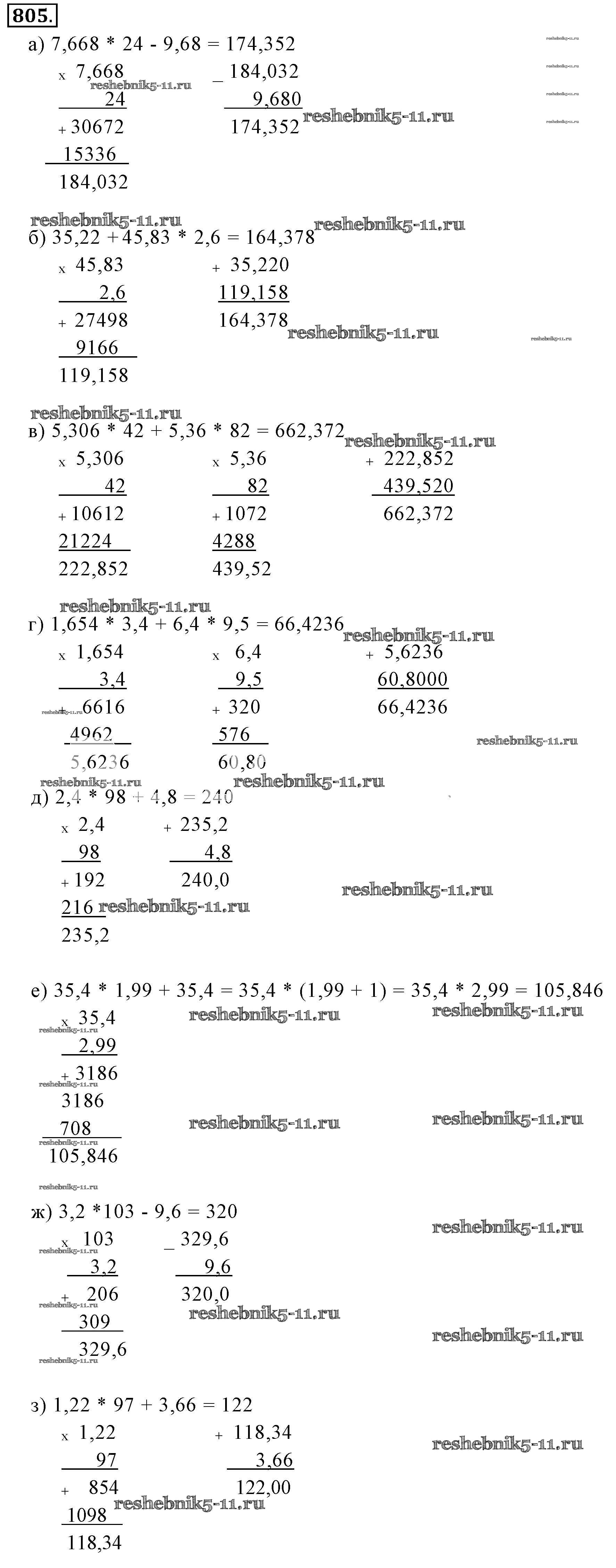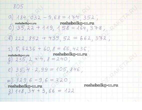 Готовая домашняя работа с ответами по Математике за 6 класс Никольский, Потапов, Решетников, Шевкин Учебник МГУ - школе Просвещение 2014 ФГОС - Номера 805