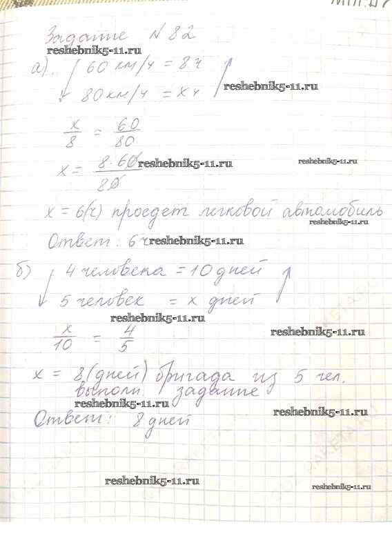 Готовая домашняя работа с ответами по Математике за 6 класс Никольский, Потапов, Решетников, Шевкин Учебник МГУ - школе Просвещение 2014 ФГОС - Номера 82