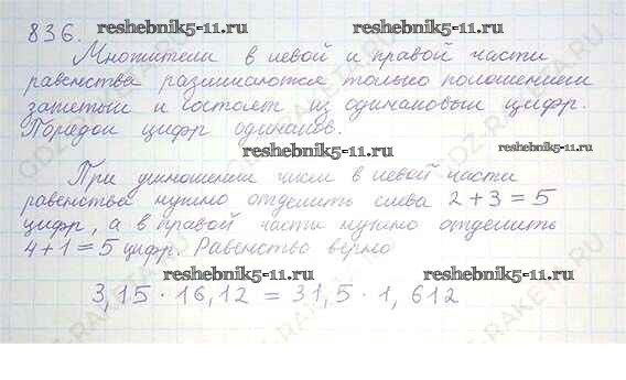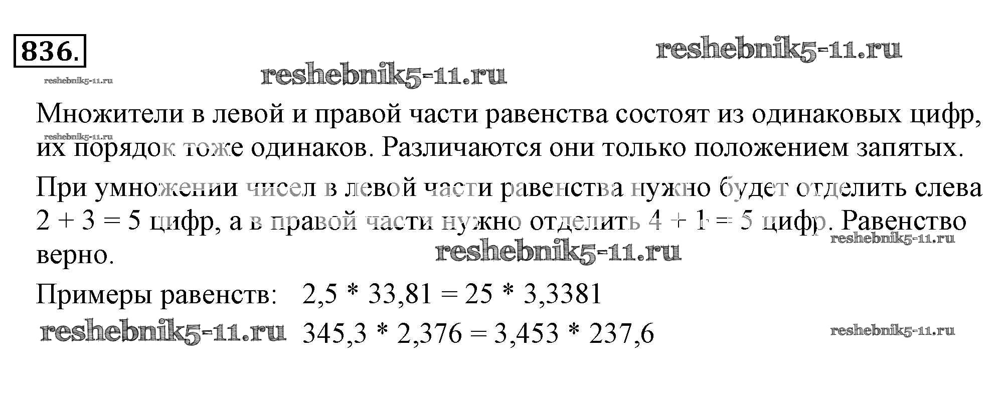 Готовая домашняя работа с ответами по Математике за 6 класс Никольский, Потапов, Решетников, Шевкин Учебник МГУ - школе Просвещение 2014 ФГОС - Номера 836