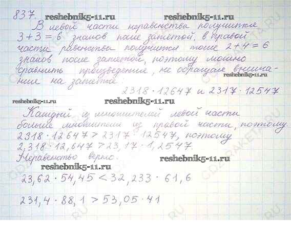 Готовая домашняя работа с ответами по Математике за 6 класс Никольский, Потапов, Решетников, Шевкин Учебник МГУ - школе Просвещение 2014 ФГОС - Номера 837