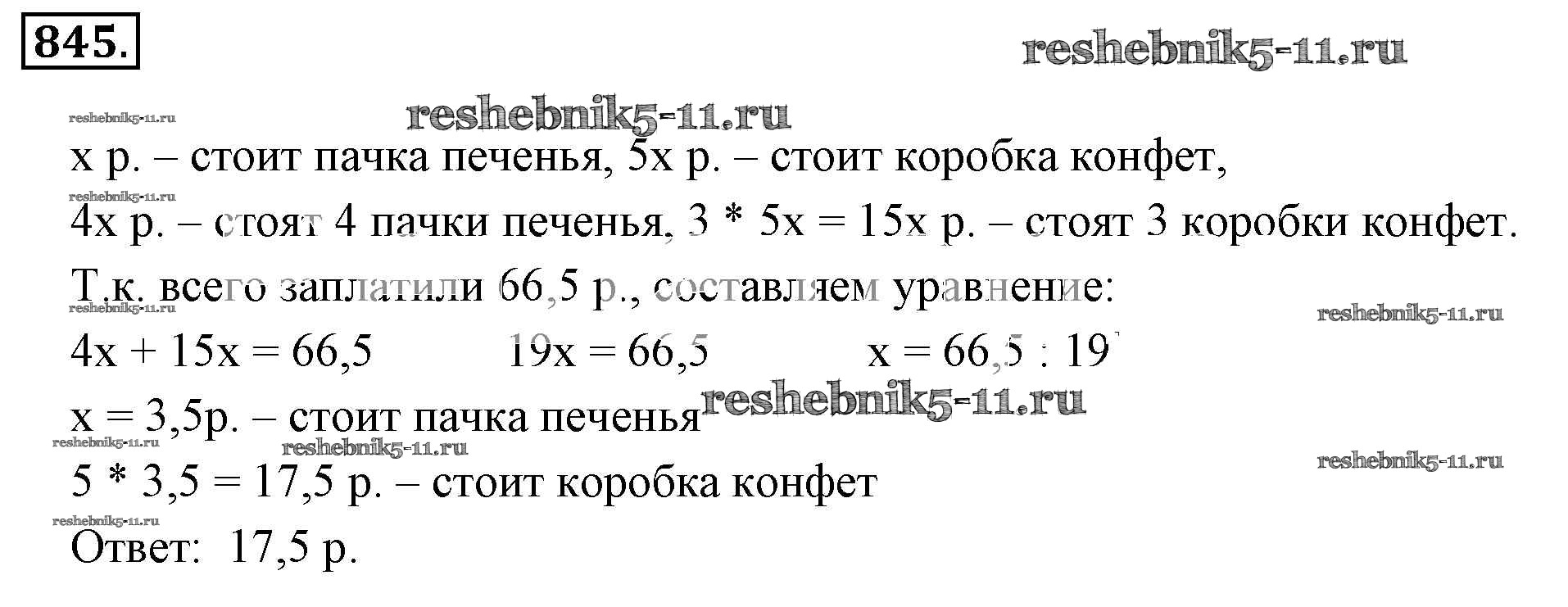 Готовая домашняя работа с ответами по Математике за 6 класс Никольский, Потапов, Решетников, Шевкин Учебник МГУ - школе Просвещение 2014 ФГОС - Номера 845