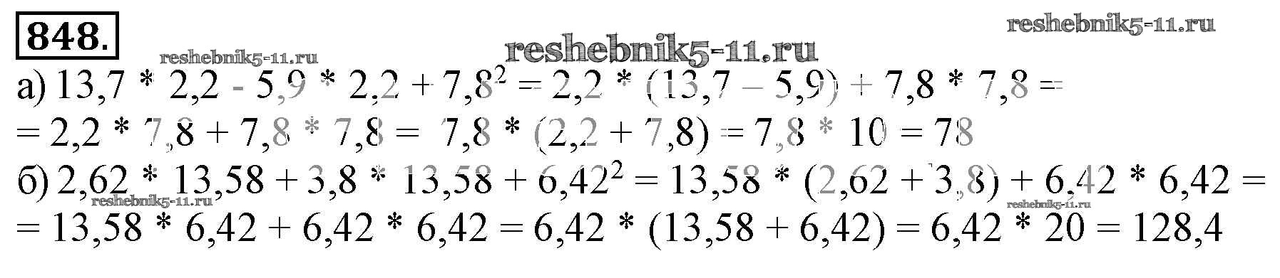 Готовая домашняя работа с ответами по Математике за 6 класс Никольский, Потапов, Решетников, Шевкин Учебник МГУ - школе Просвещение 2014 ФГОС - Номера 848