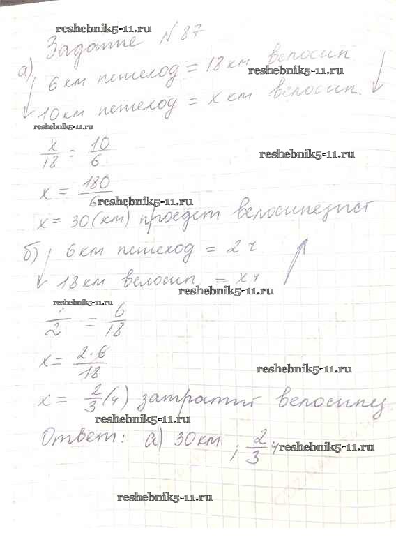 Готовая домашняя работа с ответами по Математике за 6 класс Никольский, Потапов, Решетников, Шевкин Учебник МГУ - школе Просвещение 2014 ФГОС - Номера 87