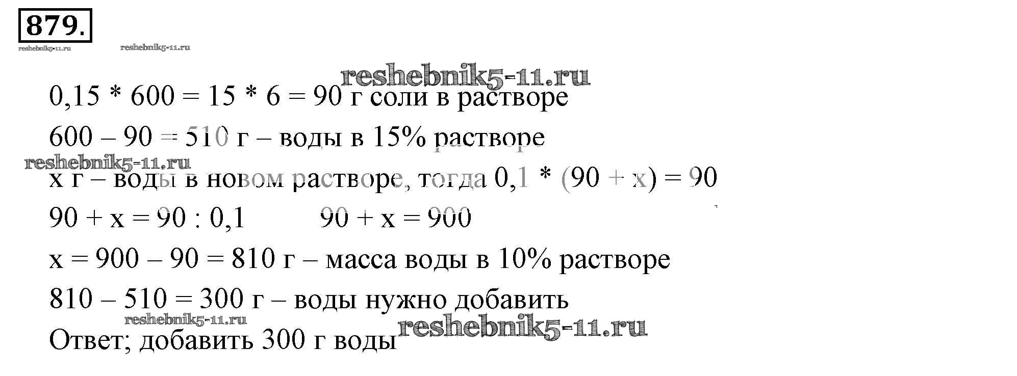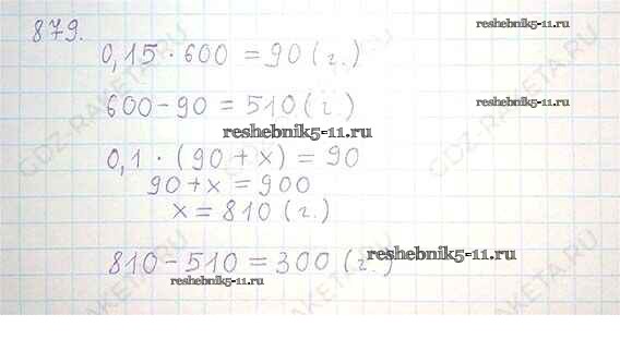 Готовая домашняя работа с ответами по Математике за 6 класс Никольский, Потапов, Решетников, Шевкин Учебник МГУ - школе Просвещение 2014 ФГОС - Номера 879
