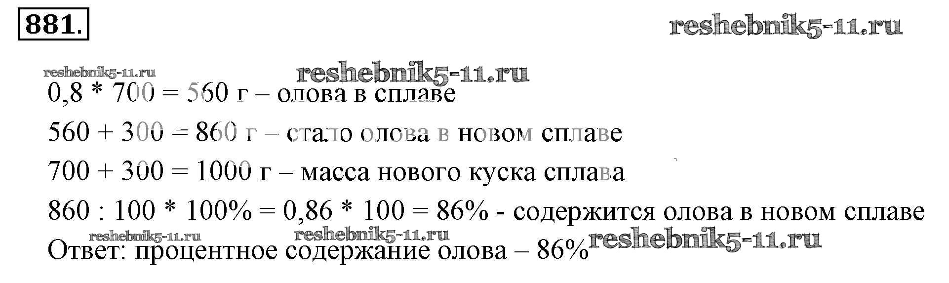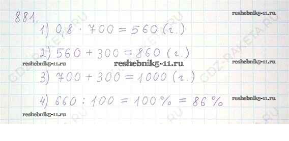 Готовая домашняя работа с ответами по Математике за 6 класс Никольский, Потапов, Решетников, Шевкин Учебник МГУ - школе Просвещение 2014 ФГОС - Номера 881