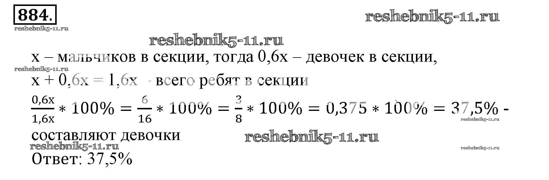 Готовая домашняя работа с ответами по Математике за 6 класс Никольский, Потапов, Решетников, Шевкин Учебник МГУ - школе Просвещение 2014 ФГОС - Номера 884