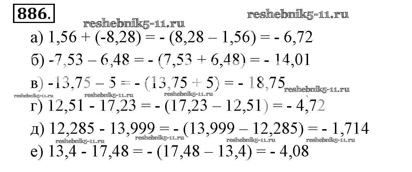 Готовая домашняя работа с ответами по Математике за 6 класс Никольский, Потапов, Решетников, Шевкин Учебник МГУ - школе Просвещение 2014 ФГОС - Номера 886