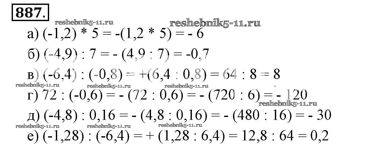 Готовая домашняя работа с ответами по Математике за 6 класс Никольский, Потапов, Решетников, Шевкин Учебник МГУ - школе Просвещение 2014 ФГОС - Номера 887
