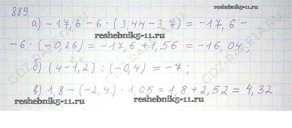 Готовая домашняя работа с ответами по Математике за 6 класс Никольский, Потапов, Решетников, Шевкин Учебник МГУ - школе Просвещение 2014 ФГОС - Номера 889