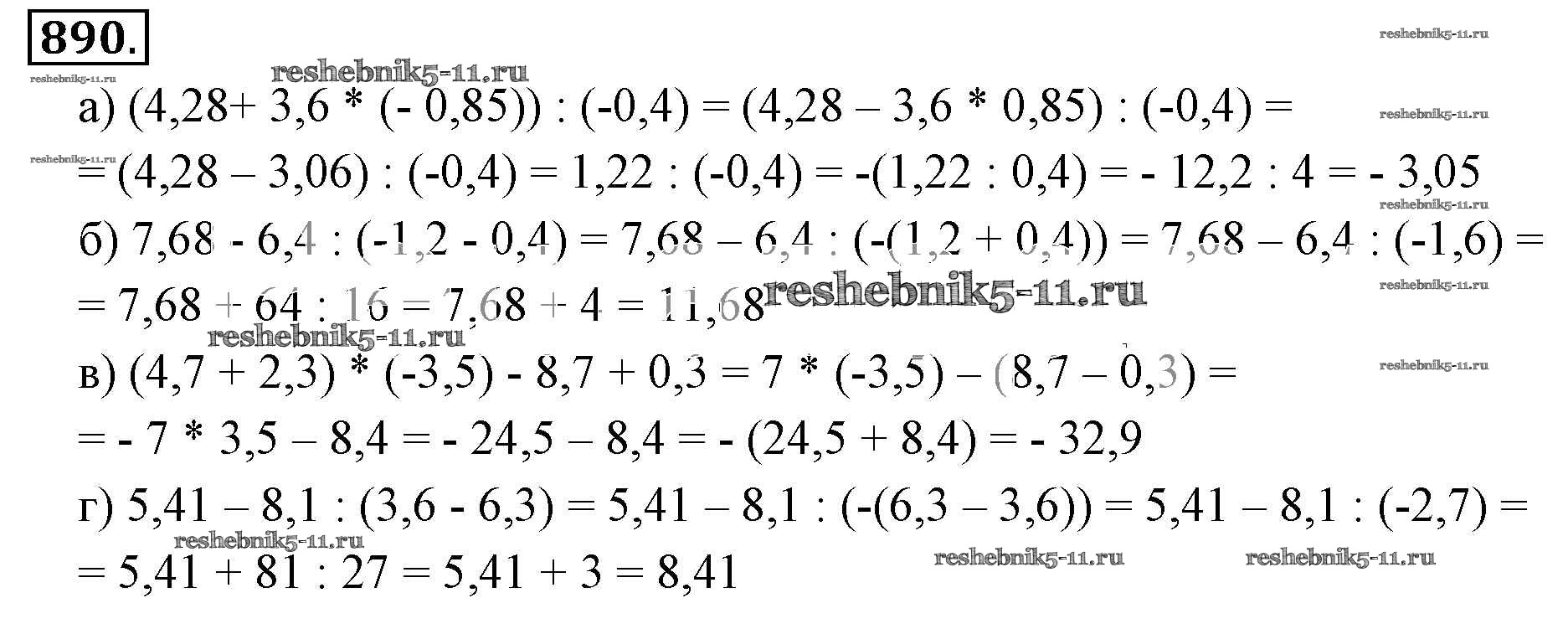 Готовая домашняя работа с ответами по Математике за 6 класс Никольский, Потапов, Решетников, Шевкин Учебник МГУ - школе Просвещение 2014 ФГОС - Номера 890