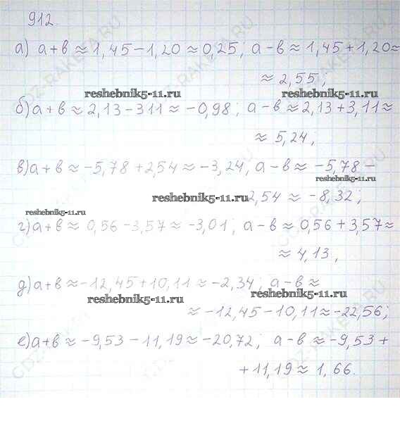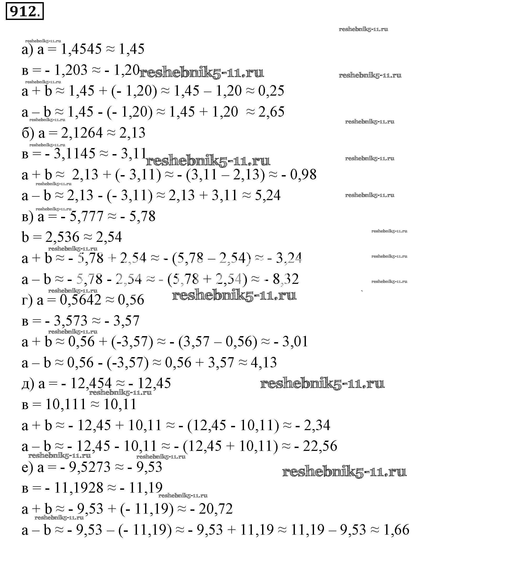 Готовая домашняя работа с ответами по Математике за 6 класс Никольский, Потапов, Решетников, Шевкин Учебник МГУ - школе Просвещение 2014 ФГОС - Номера 912