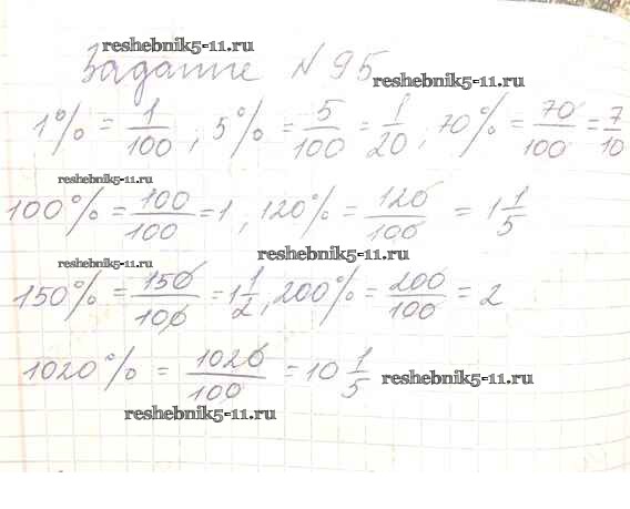 Готовая домашняя работа с ответами по Математике за 6 класс Никольский, Потапов, Решетников, Шевкин Учебник МГУ - школе Просвещение 2014 ФГОС - Номера 95