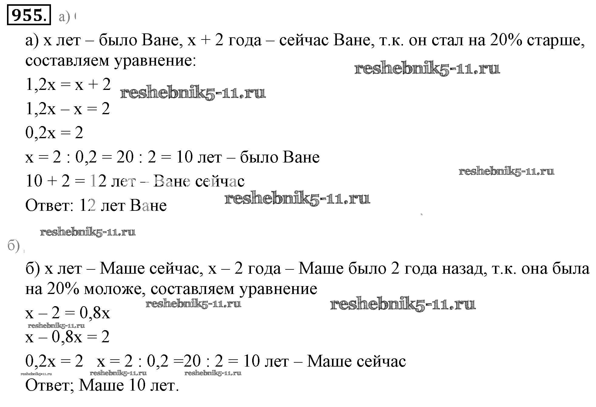 Готовая домашняя работа с ответами по Математике за 6 класс Никольский, Потапов, Решетников, Шевкин Учебник МГУ - школе Просвещение 2014 ФГОС - Номера 955