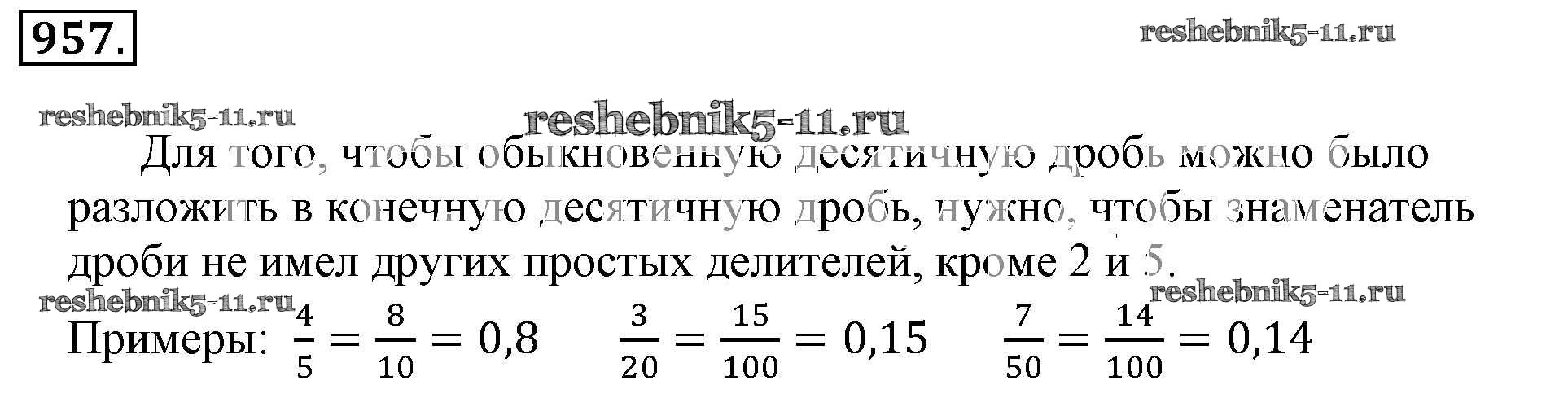 Готовая домашняя работа с ответами по Математике за 6 класс Никольский, Потапов, Решетников, Шевкин Учебник МГУ - школе Просвещение 2014 ФГОС - Номера 957