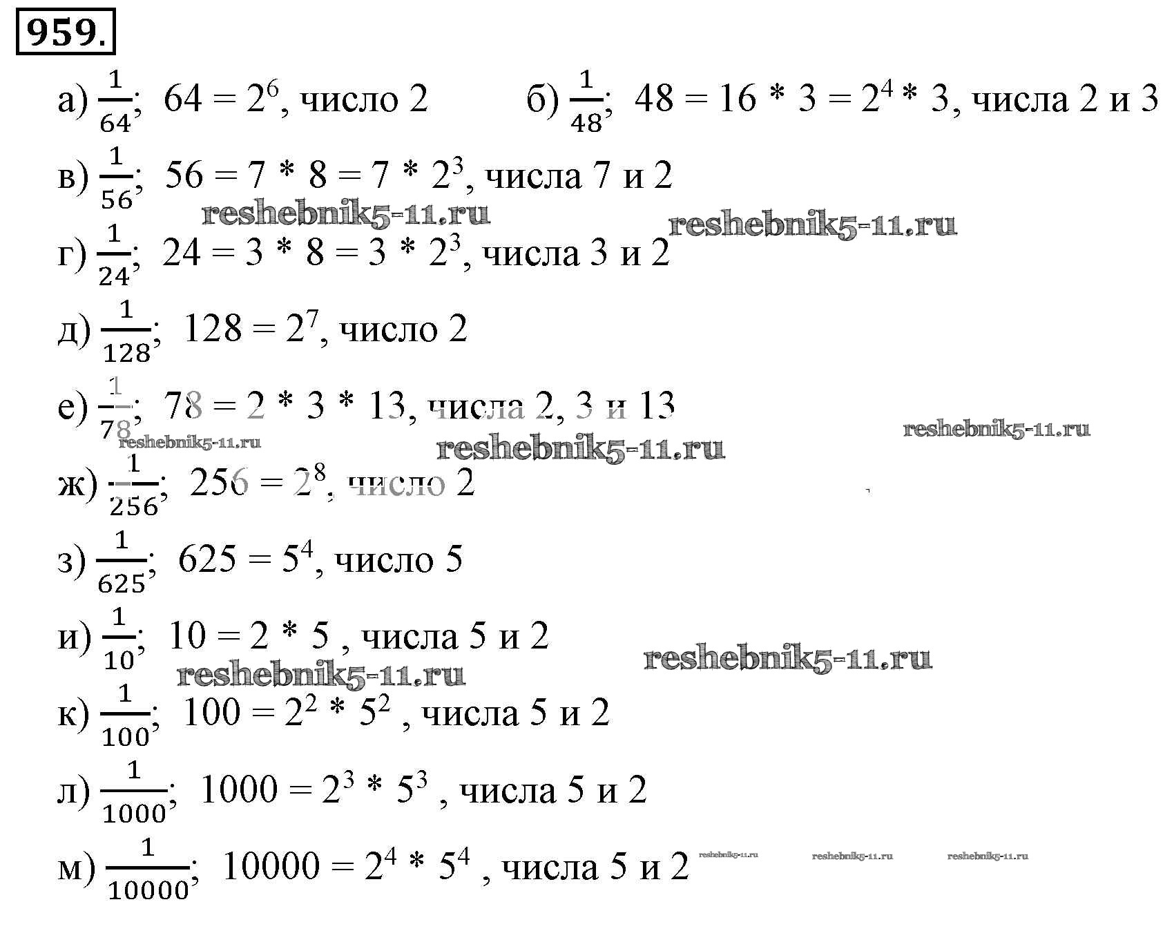 Готовая домашняя работа с ответами по Математике за 6 класс Никольский, Потапов, Решетников, Шевкин Учебник МГУ - школе Просвещение 2014 ФГОС - Номера 959