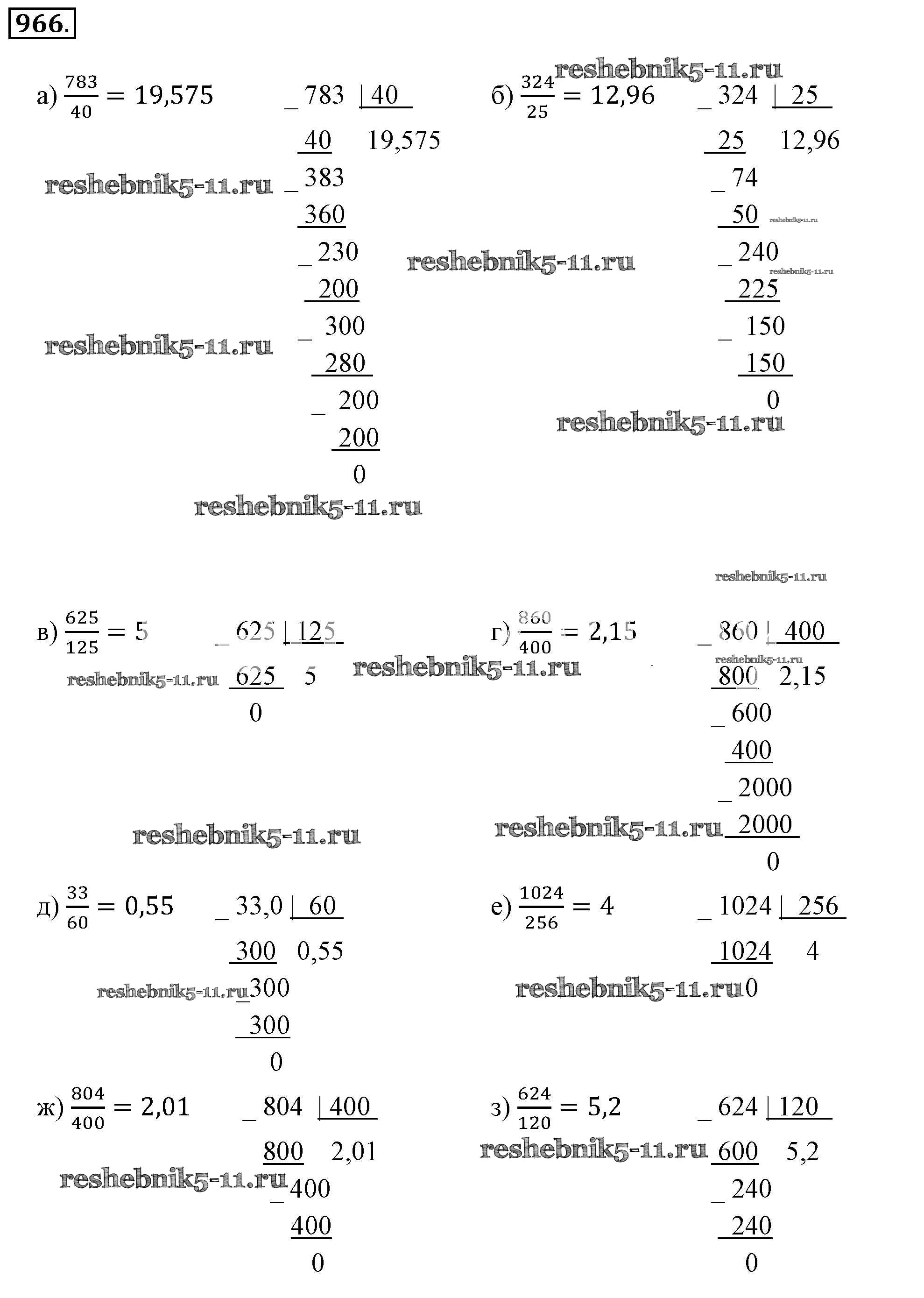 Готовая домашняя работа с ответами по Математике за 6 класс Никольский, Потапов, Решетников, Шевкин Учебник МГУ - школе Просвещение 2014 ФГОС - Номера 966