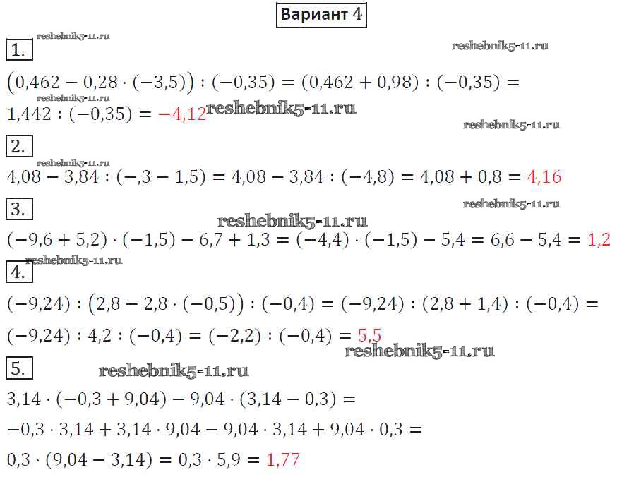 Готовая домашняя работа с ответами по Математике за 6 класс Потапов, Шевкин Дидактические материалы МГУ - школе Просвещение 2017 ФГОС - СР-34. Варианты 4