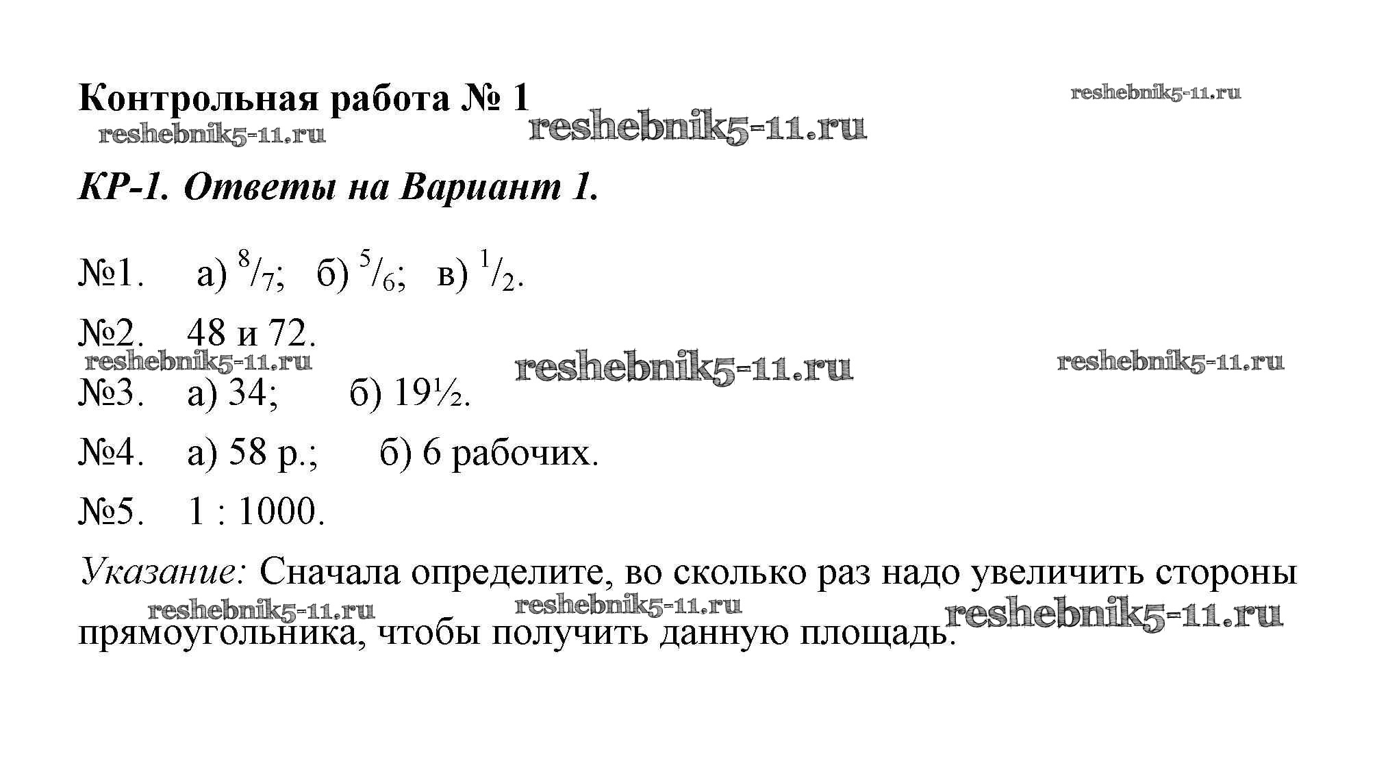 Готовая домашняя работа с ответами по Математике за 6 класс Потапов, Шевкин Дидактические материалы МГУ - школе Просвещение 2017 ФГОС - КР-1. Варианты 1
