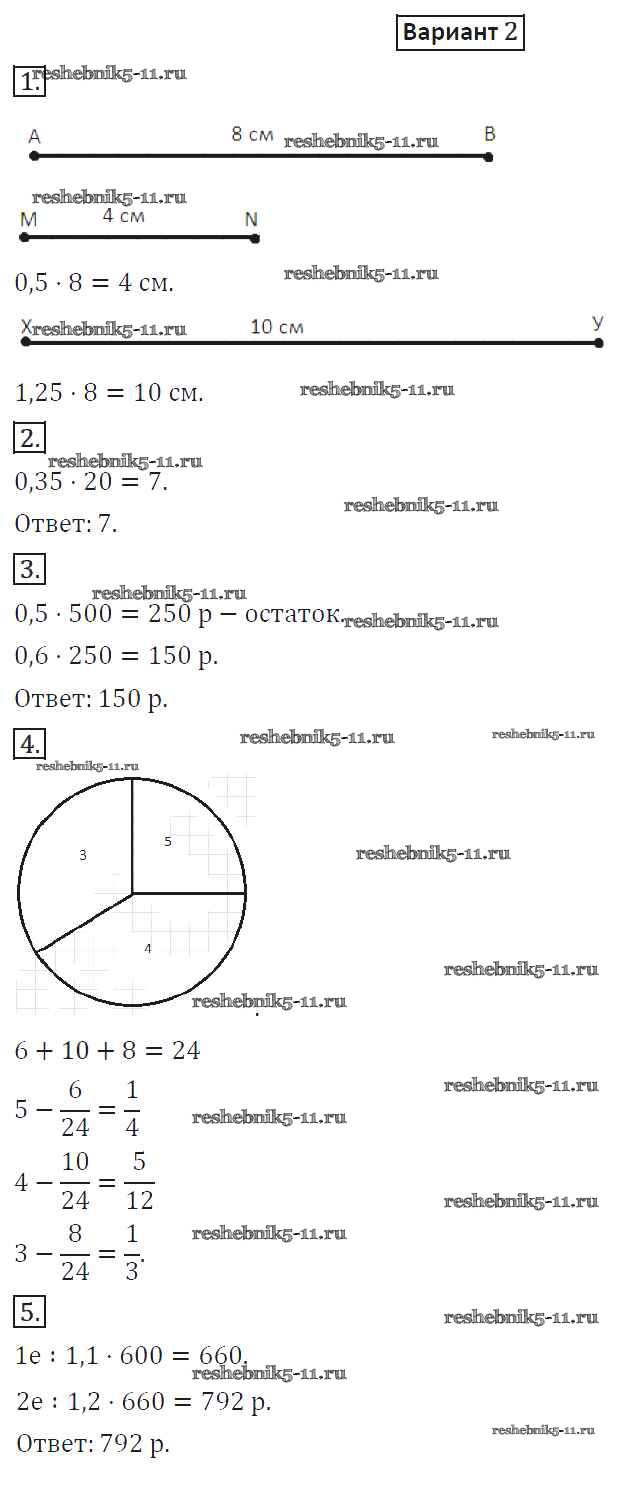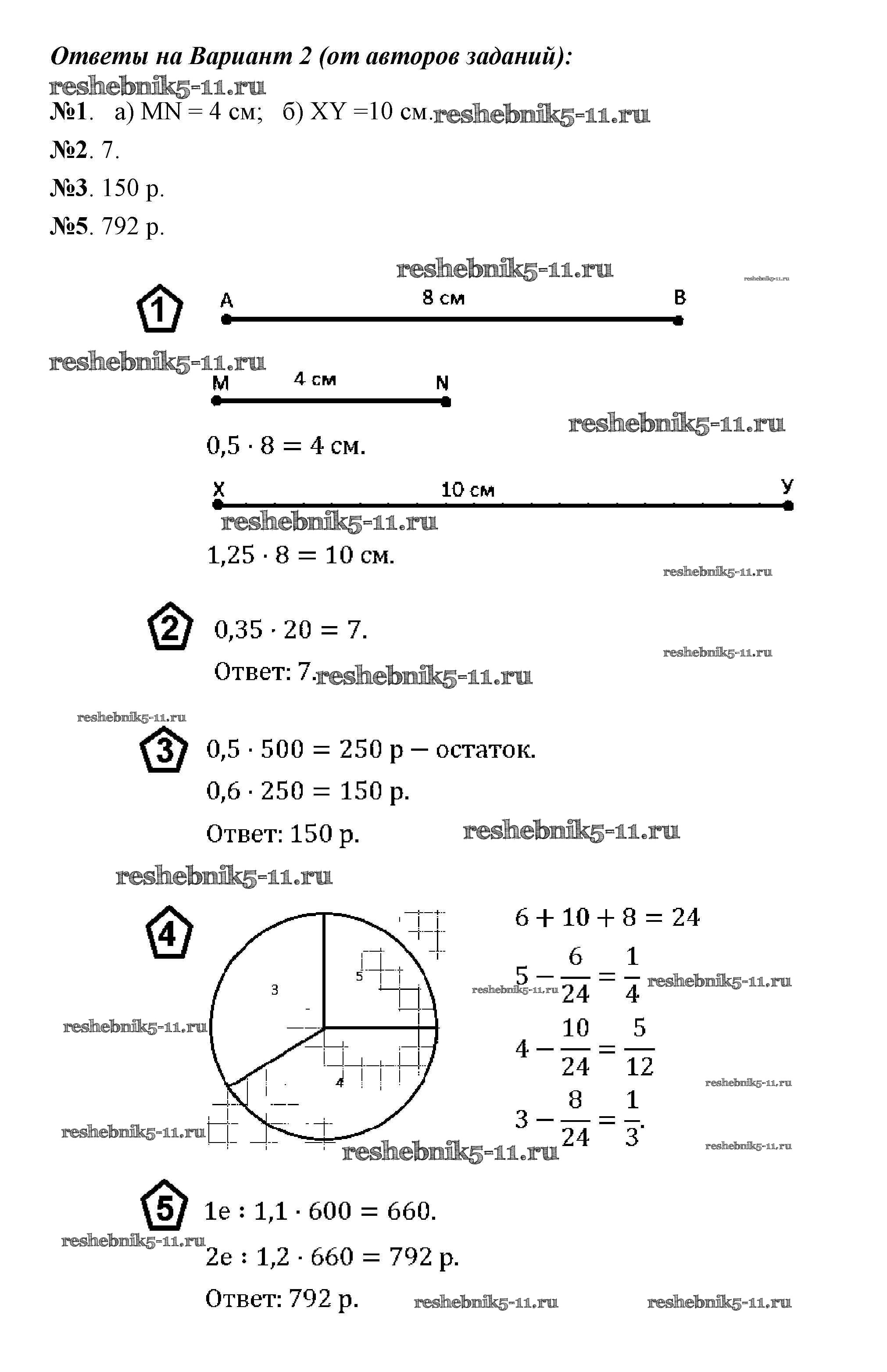 Готовая домашняя работа с ответами по Математике за 6 класс Потапов, Шевкин Дидактические материалы МГУ - школе Просвещение 2017 ФГОС - КР-2. Варианты 2
