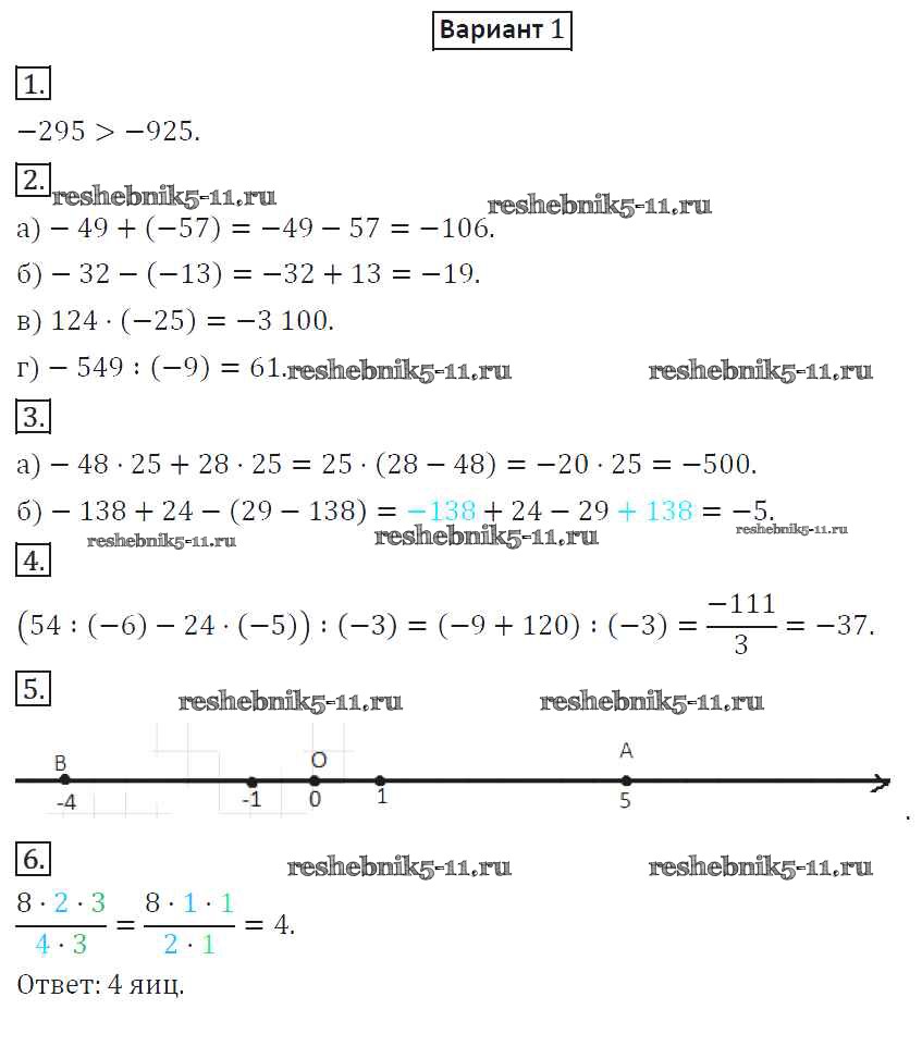 Готовая домашняя работа с ответами по Математике за 6 класс Потапов, Шевкин Дидактические материалы МГУ - школе Просвещение 2017 ФГОС - КР-3. Варианты 1