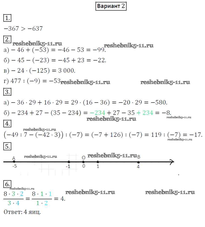 Готовая домашняя работа с ответами по Математике за 6 класс Потапов, Шевкин Дидактические материалы МГУ - школе Просвещение 2017 ФГОС - КР-3. Варианты 2