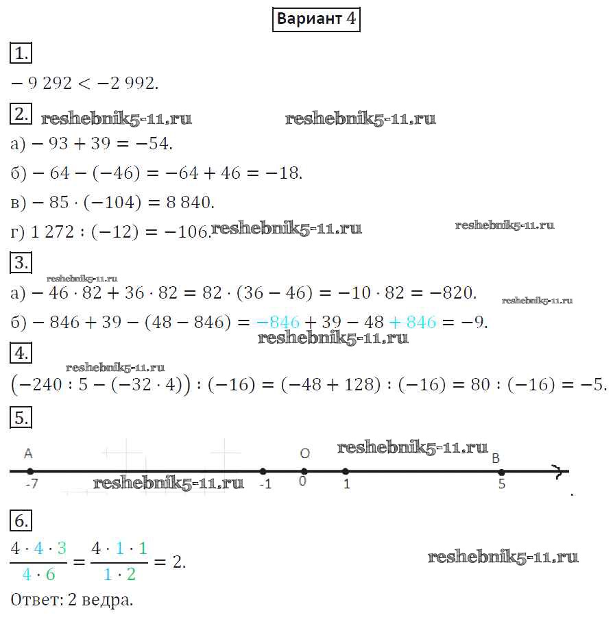 Готовая домашняя работа с ответами по Математике за 6 класс Потапов, Шевкин Дидактические материалы МГУ - школе Просвещение 2017 ФГОС - КР-3. Варианты 4