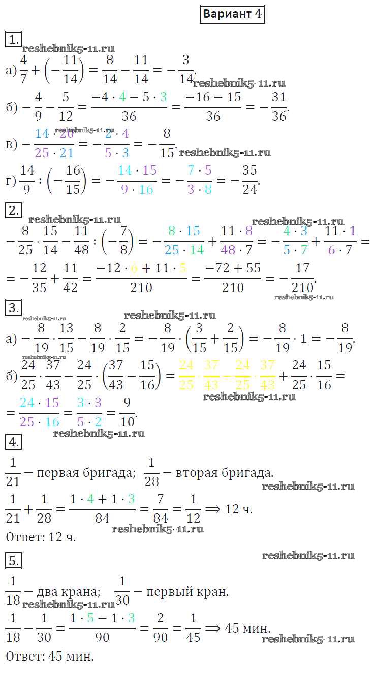 Готовая домашняя работа с ответами по Математике за 6 класс Потапов, Шевкин Дидактические материалы МГУ - школе Просвещение 2017 ФГОС - КР-4. Варианты 4