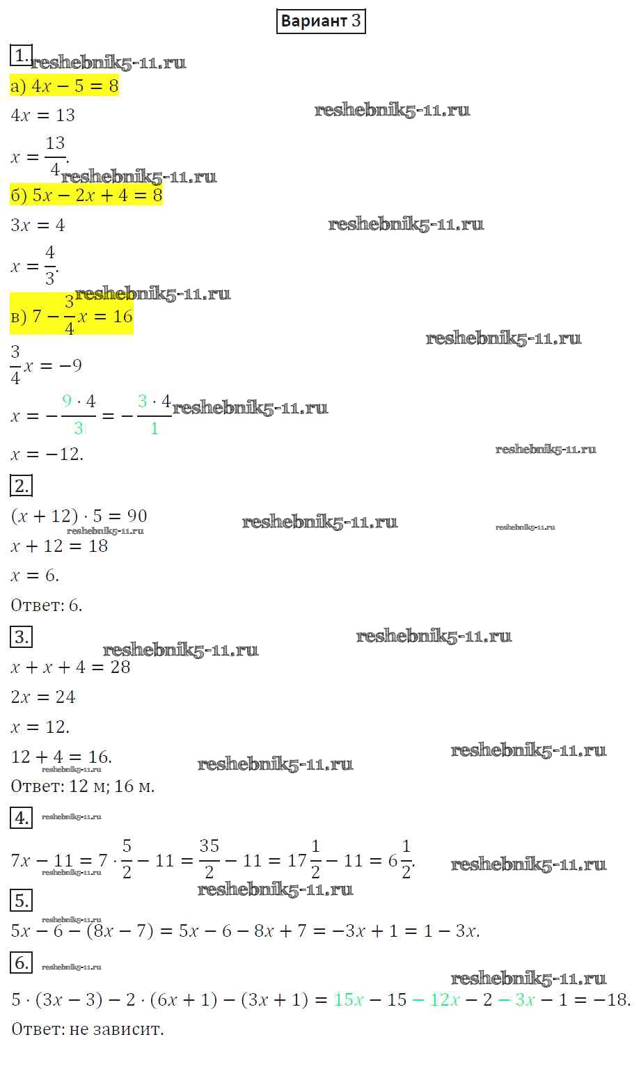 Готовая домашняя работа с ответами по Математике за 6 класс Потапов, Шевкин Дидактические материалы МГУ - школе Просвещение 2017 ФГОС - КР-5. Варианты 3