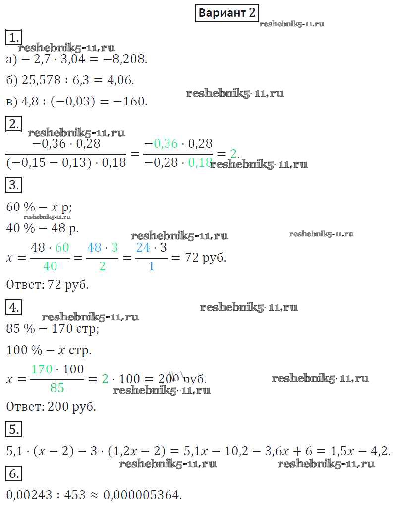 Готовая домашняя работа с ответами по Математике за 6 класс Потапов, Шевкин Дидактические материалы МГУ - школе Просвещение 2017 ФГОС - КР-7. Варианты 2