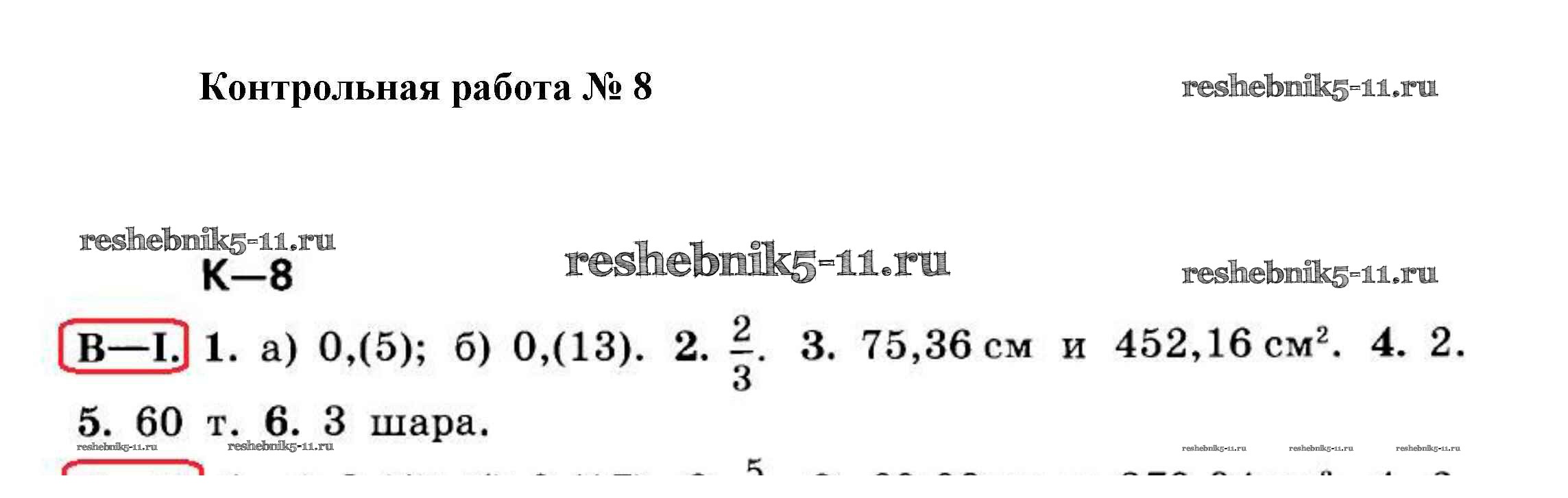 Готовая домашняя работа с ответами по Математике за 6 класс Потапов, Шевкин Дидактические материалы МГУ - школе Просвещение 2017 ФГОС - КР-8. Варианты 1