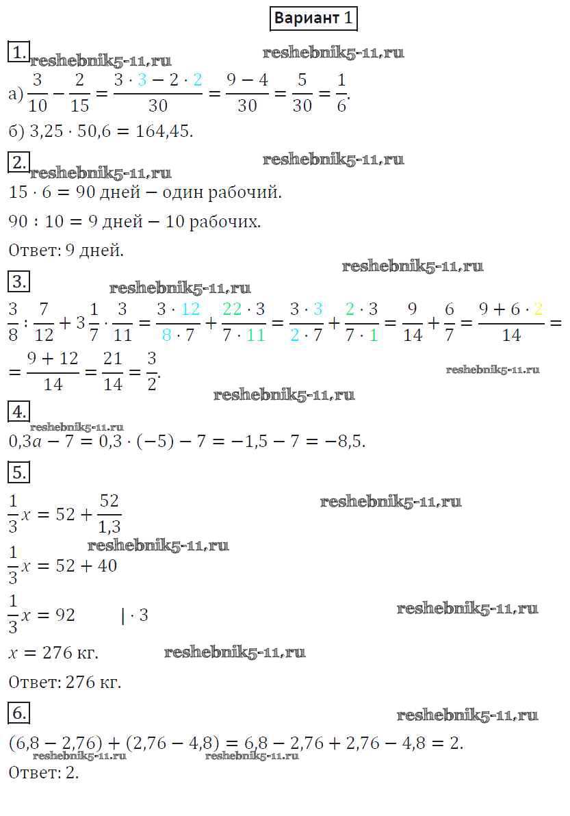 Готовая домашняя работа с ответами по Математике за 6 класс Потапов, Шевкин Дидактические материалы МГУ - школе Просвещение 2017 ФГОС - КР-9. Варианты 1