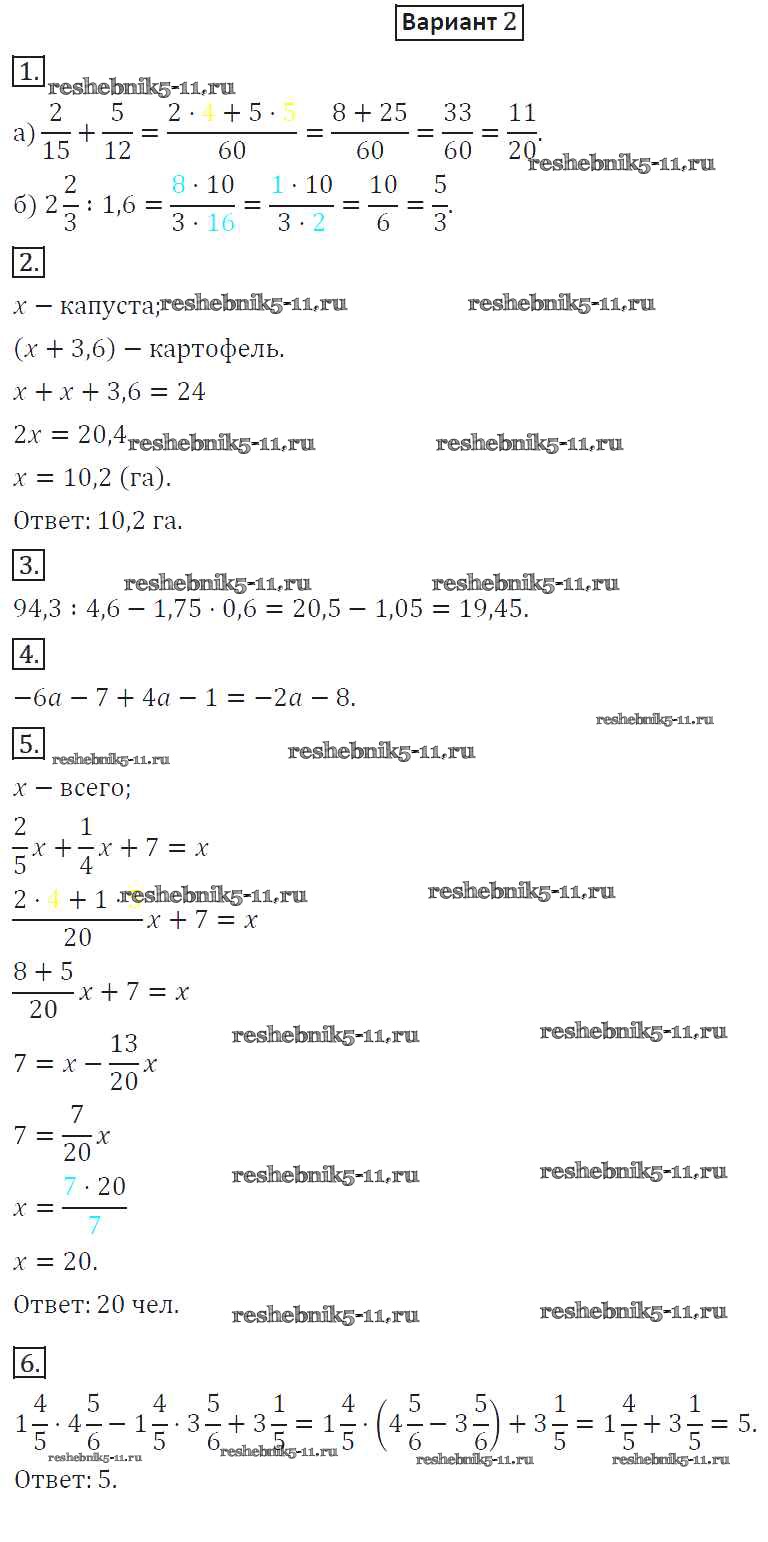 Готовая домашняя работа с ответами по Математике за 6 класс Потапов, Шевкин Дидактические материалы МГУ - школе Просвещение 2017 ФГОС - КР-9. Варианты 2
