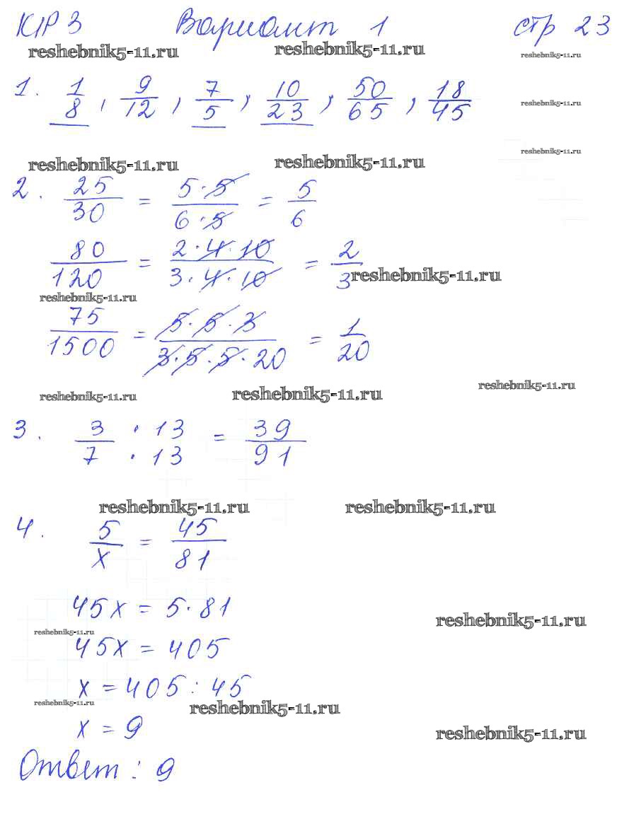 Готовая домашняя работа с ответами по Математике за 6 класс Рудницкая Рабочая тетрадь УМК Часть 1, 2 Экзамен 2013 ФГОС - Часть 1. Страницы 23
