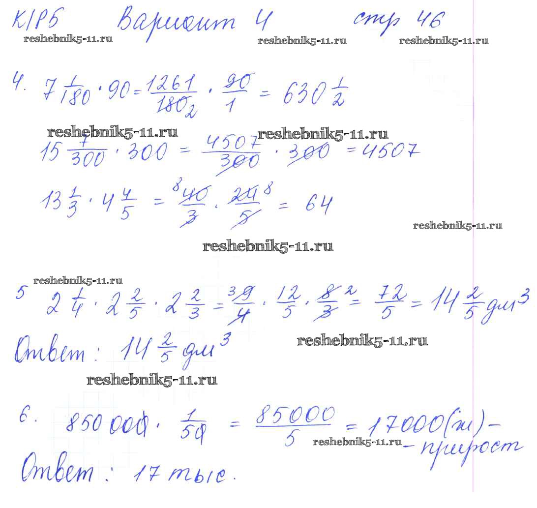Готовая домашняя работа с ответами по Математике за 6 класс Рудницкая Рабочая тетрадь УМК Часть 1, 2 Экзамен 2013 ФГОС - Часть 1. Страницы 46